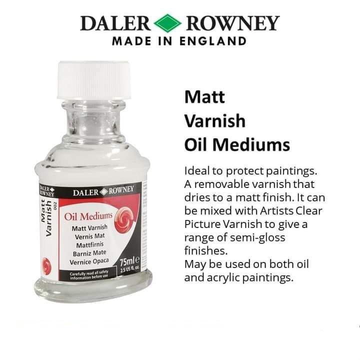 Matt Varnish For Oil Colors is a removable varnish that dries to a matt finish. It is non-yellowing. Removable with turpentine or white spirit, and can be used to varnish oils or acrylics.