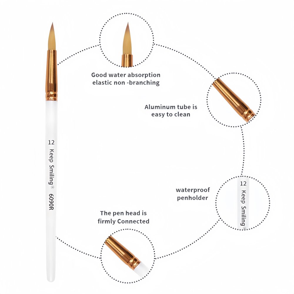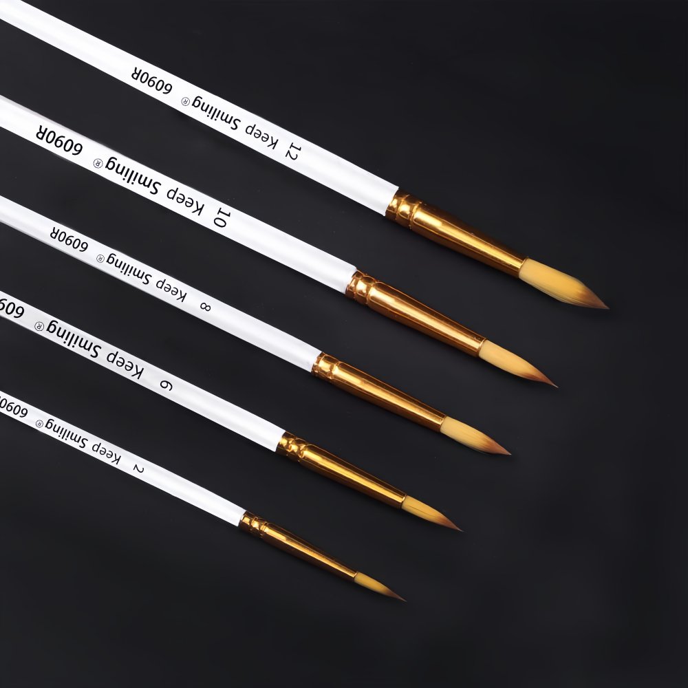 Master details and flowing lines with the Keep Smiling Round Brush Set. These 5 brushes feature fine, durable synthetic hairs, designed for excellent control. They are perfect for detailed work, outlining, and creating varying line thicknesses with pressure. A versatile set for all techniques like acrylic, oil paints and watercolors.